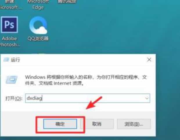 3、如下图所示,在运行窗口中,点击输入框,输入dxdiag。
