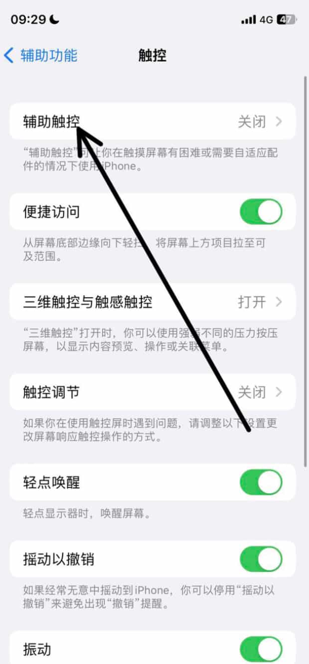 打开辅助触控,屏幕上就会出现一个白色的小圆球。