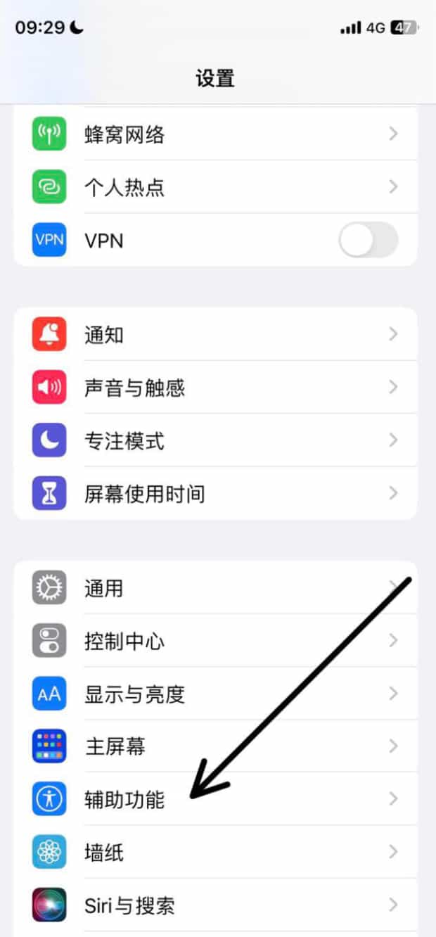 第三:在通用列表中,找到【辅助功能】一栏,点击进入。
