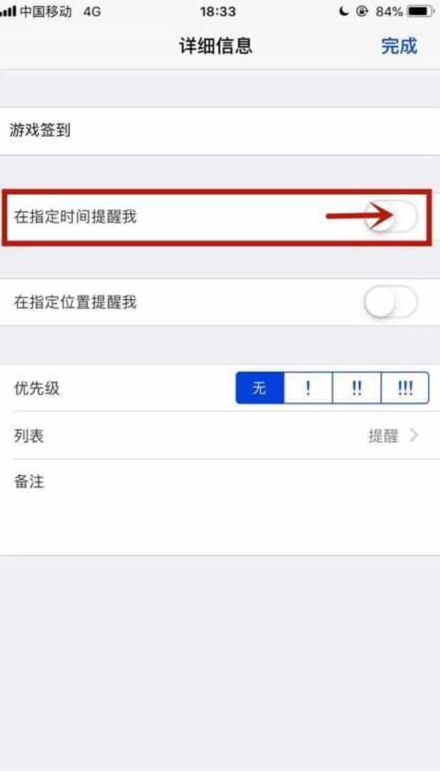 第三:备注处输入你要提醒的事项备注,例如地点位置,点击详细信息。