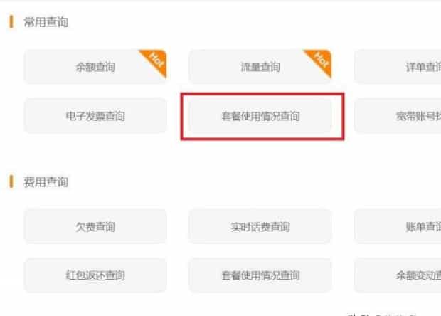 4、在打开的信息查询页面中,点击“套餐使用情况查询”按钮;