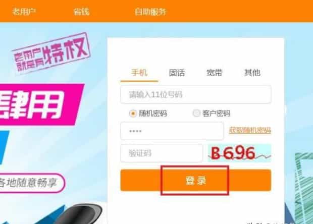 2、在账号登录页面中,输入手机号码和服务密码,点击“登录”按钮;