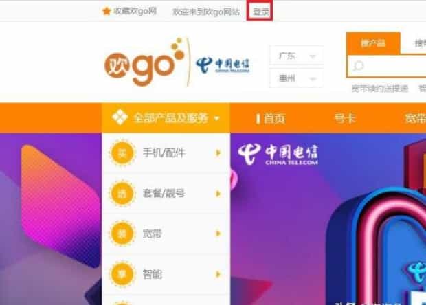 1、打开中国电信网上营业厅官网页面,点击顶部“登录”按钮;