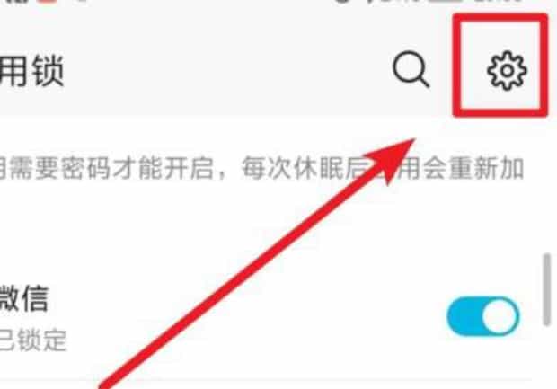 第五:在应用锁界面,点击右上方的设置的图标进入。