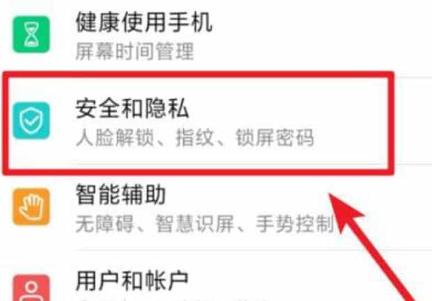 第二:在设置列表中,点击页面的安全和隐私的选项。