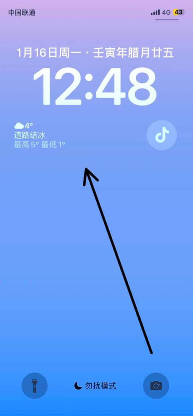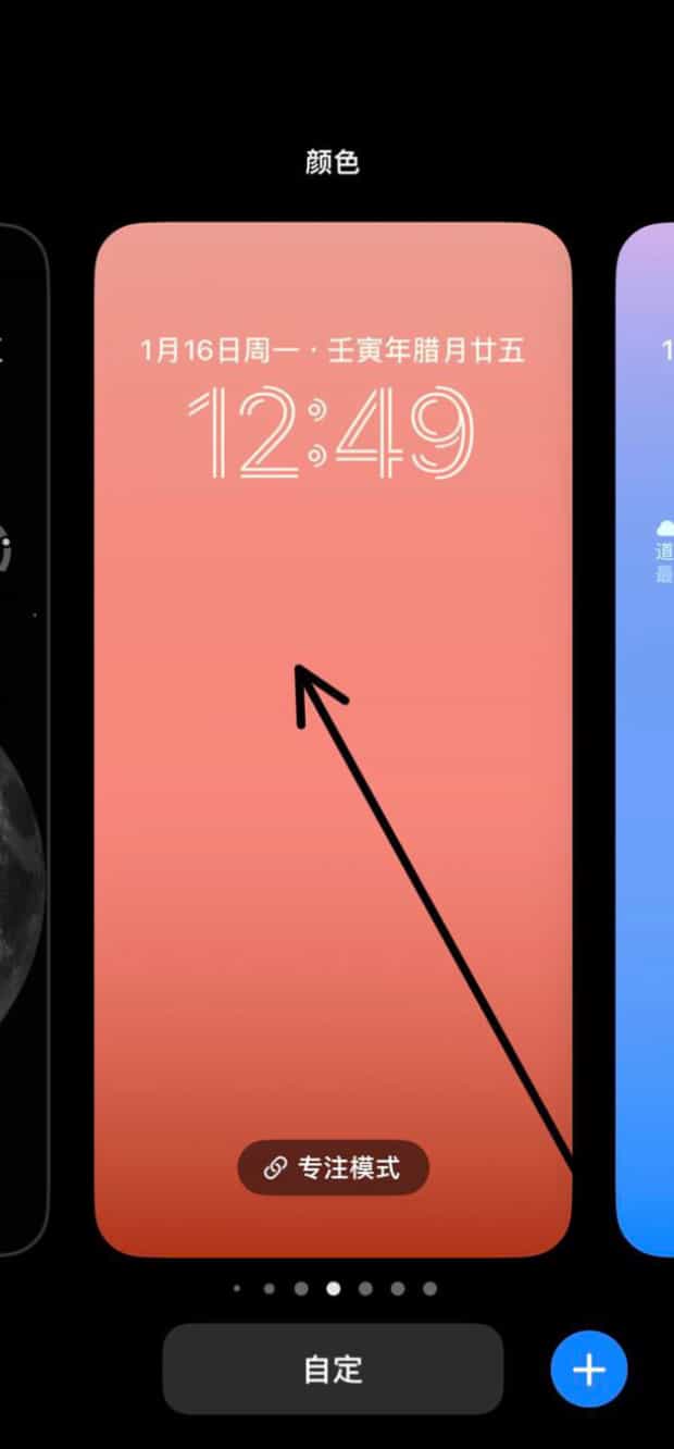 以苹果16.0版本为例,从屏幕顶部下滑进入壁纸页面,并长按此页面。