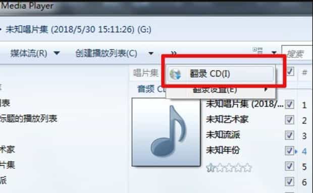 切换到媒体库并看到如下界面。点击“翻录CD”。