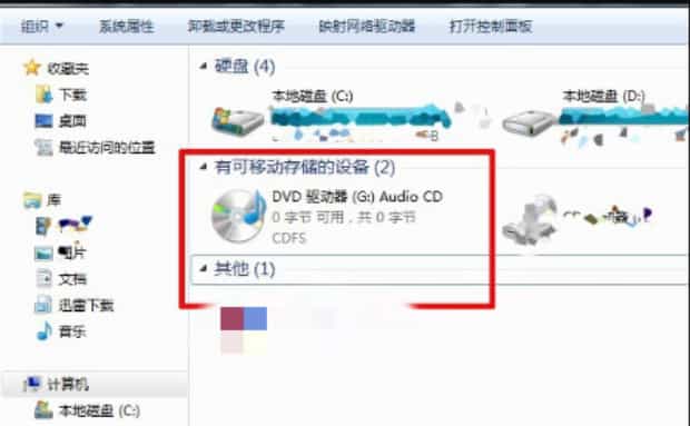 接下来,电脑读取cd。播放软件开始自动播放CD中的音乐。