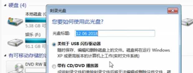 3.此时有将文件刻录到光盘,选择这一选项点击,会出现你要如何使用这个光盘,要勾选类似于usb。