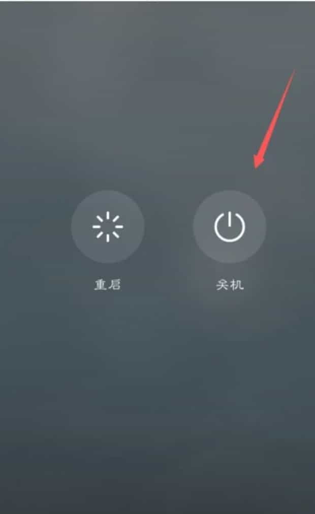 第一:首先在待机状态下按住关机键。跳出下图关机重启菜单。
