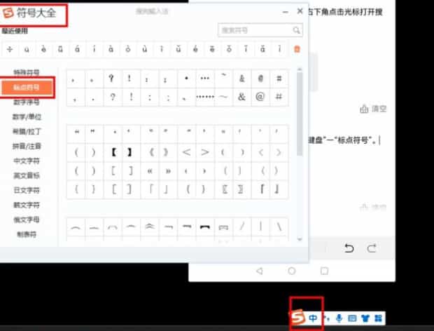 打开符号大全窗口后,点击自己想要用的标点符号即可在输入文字的地方插入标点符号