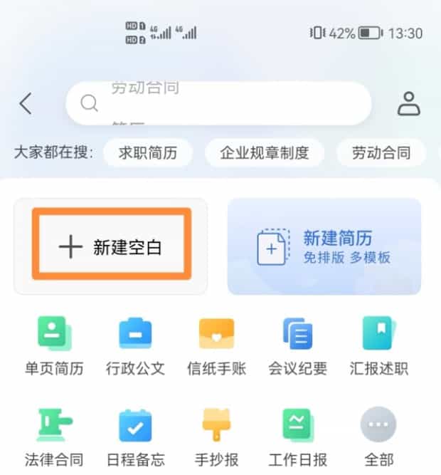 第四:进入新建文档之后,如果你需要文档模板,可以滑动手机屏幕进行选择