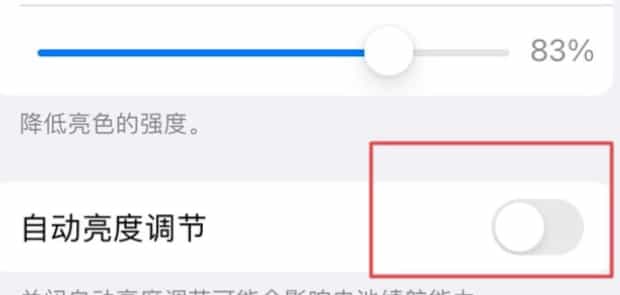 关闭“自动亮度调节”功能后,屏幕亮度就不会自动调节了。