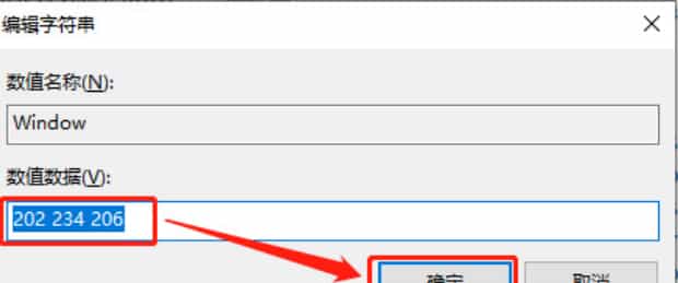 在弹出的窗口中,将数值数据设置成【202 234 206】,然后点击【确定】