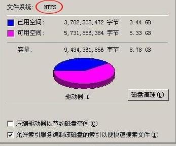 1.ntfs可以格式化成fat32,但是不能再存放单个大于4G文件了,否则会提示磁盘空间不足。且分区最大容量为32G,而ntfs则可达到2TB。