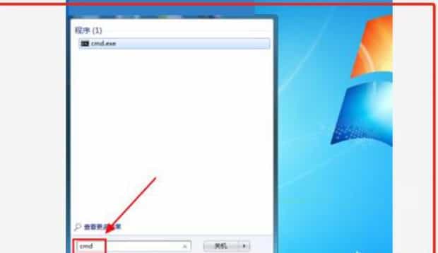3、点击电脑左下角开机键,在搜索框中输入cmd,然后按回车键,会出现一个命令行输入框。