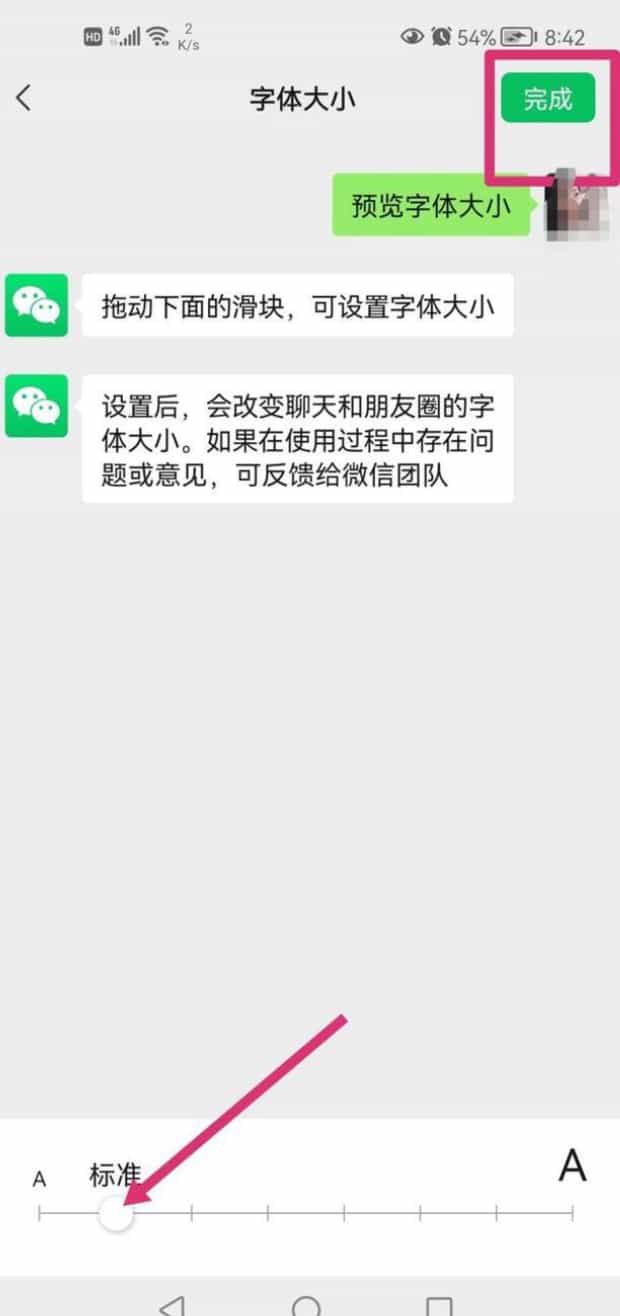 最后,通过拖动滑块来调整字体大小.,调整好点击完成即可