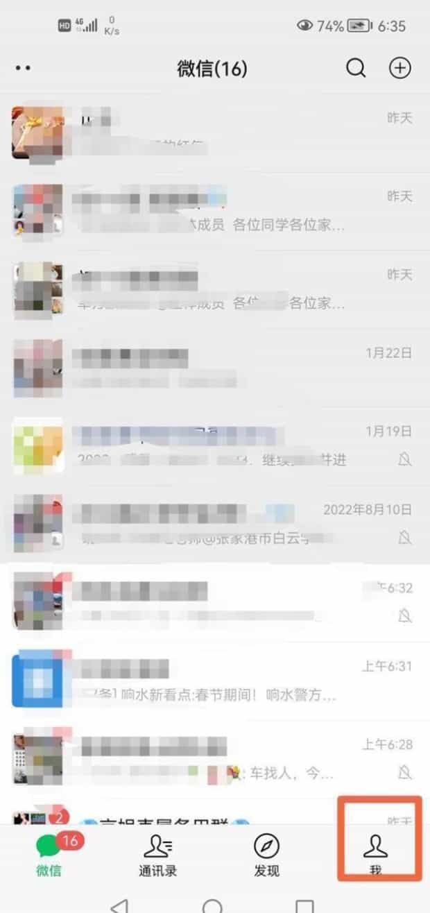 第一:进入微信,点击右下角【我】。