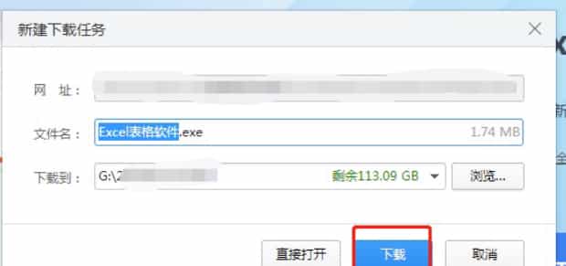 出现新建下载任务页面后,点击下载,下载excel的安装程序