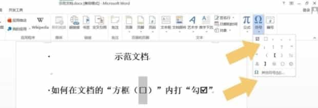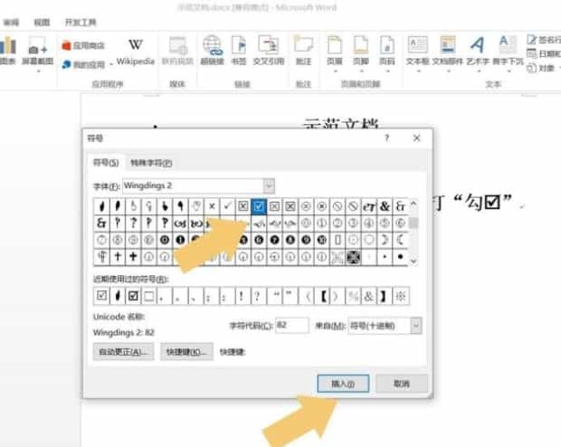 先用鼠标点击打了勾的方框,让该符号处于“选中”状态。然后点击插入