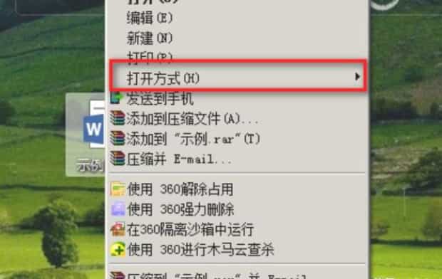 3鼠标右击,弹出相应的菜单;在菜单中,我们看到有“打开方式”,“打开方式”右边这里有一个小三角,表示,还有子菜单。