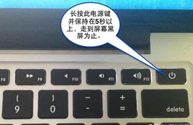 按下电源按钮超过5秒,直到屏幕变黑。(苹果电脑崩溃特别严重,无法打开任务管理器,需长时间按下电源按钮强制关闭苹果电脑。)