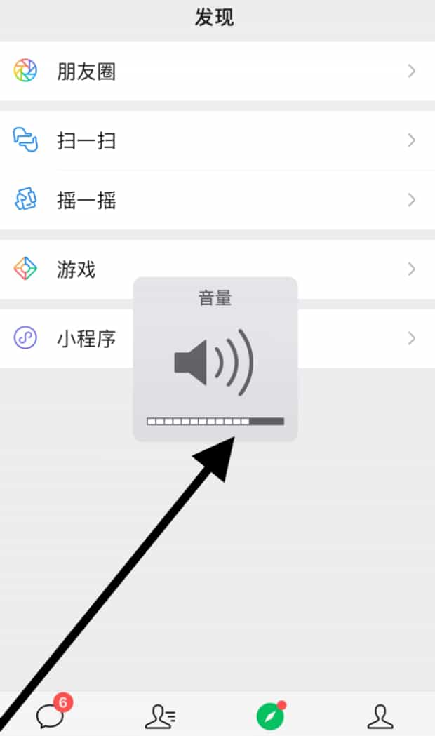 3.打开微信,在手机左侧找到音量键,按下音量键,当页面上出现音量图标后,调整到合适的音量,微信就有声音了。