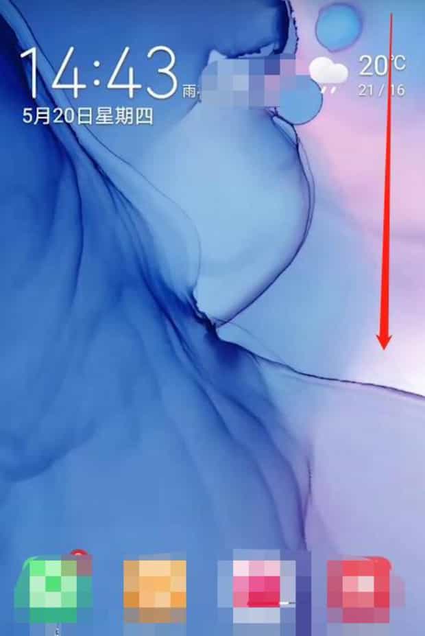 1、打开华为手机进入手机主界面,从上往下滑动弹出下拉通知栏。