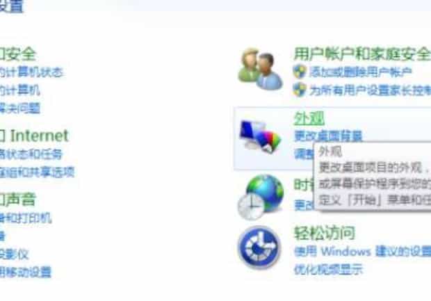 2、进入控制面板后,选择“外观”,