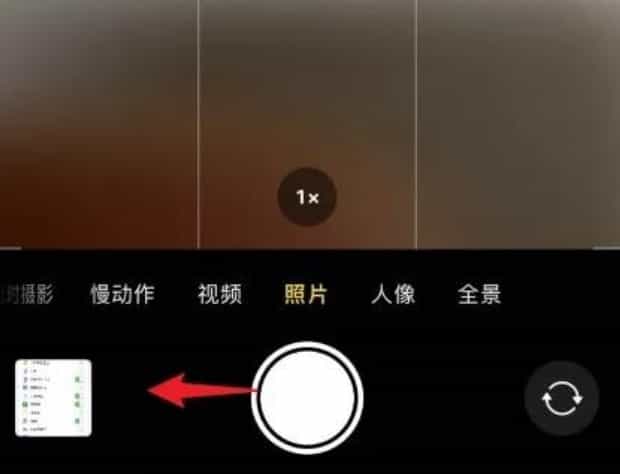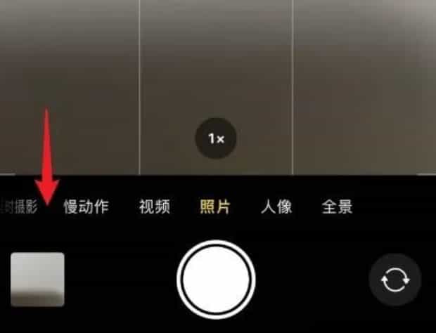 进入拍摄界面,选择照片模式,然后按住底部的白色拍摄按钮,向左拖动。