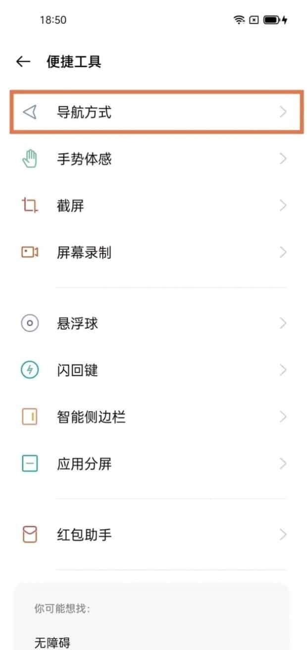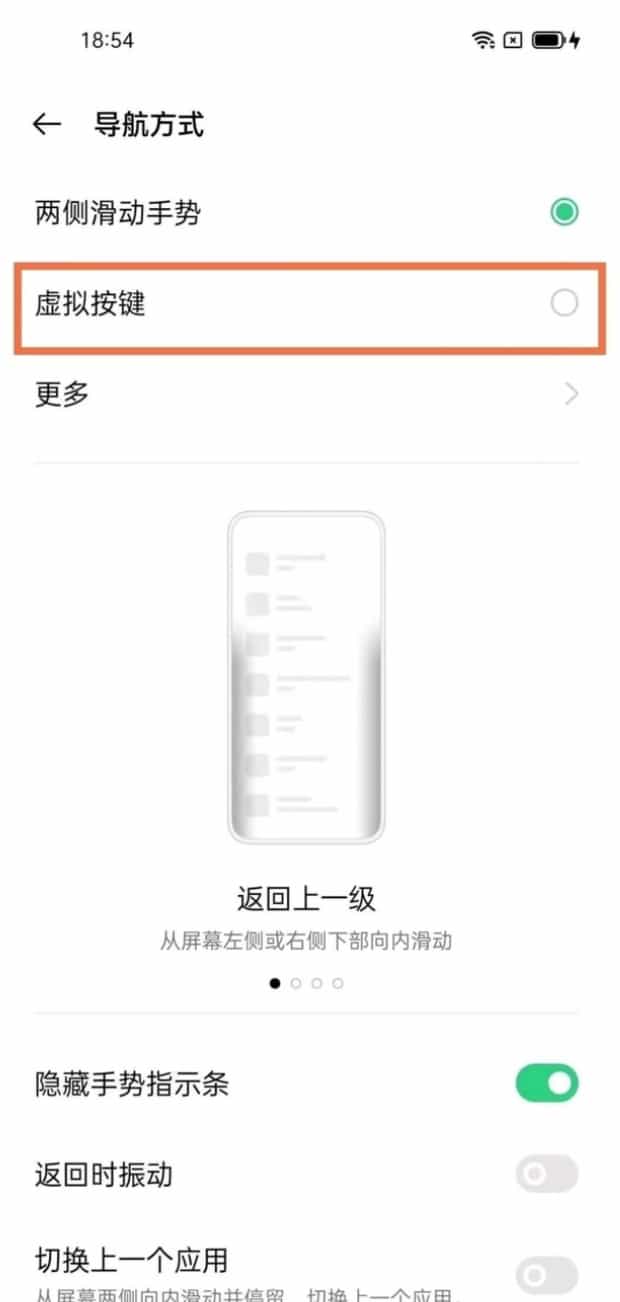 第四:第四步:进入导航键之后,可以看到导航方式的选则,先选中红色箭头所指的虚拟按键。