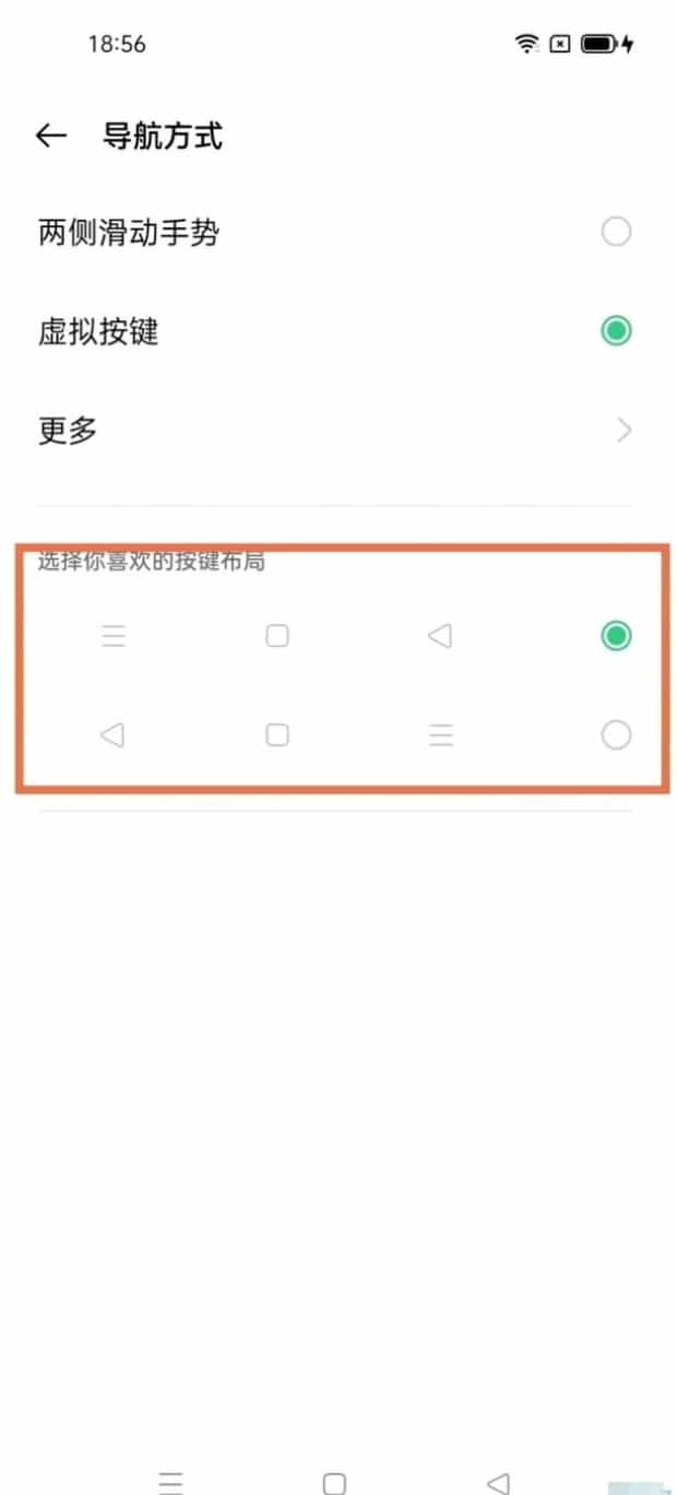 4、选择自己习惯的按键布局,其中的三角形按键就是返回键。