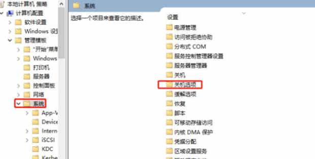 2.依次点击【计算机配置>;管理模板>;系统】,右侧找到并双击【关机选项】。
