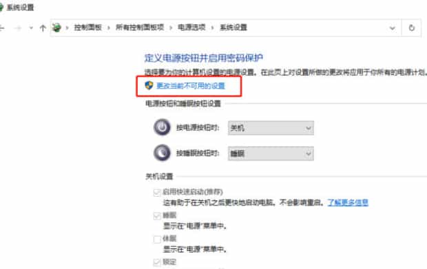 3.打开系统设置窗口,点击【更改当前不可用的系统设置】。
