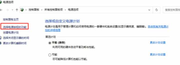 2.打开电源选项窗口,点击【选择电源按钮】的功能。