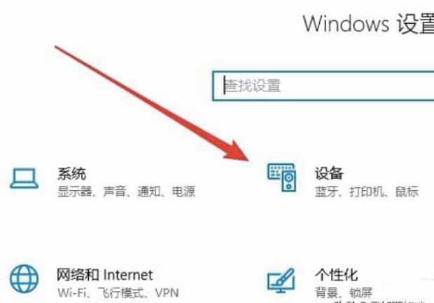 2、在打开的Windows设置窗口中,点击“设备”图标;
