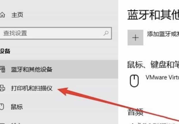 3、接下来就可以打开WIndows10的设备设置窗口了,点击左侧边栏的“打印机和扫描仪”菜单项;