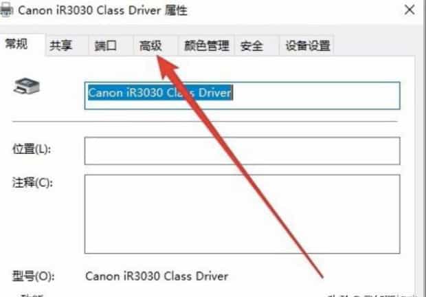 6、接下来就会弹出该打印机的属性窗口,点击窗口中的“高级”选项卡;