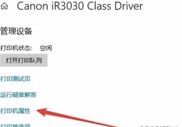5、接下来就会弹出该打印机的管理设备窗口,点击页面中的“打印机属性”快捷链接;