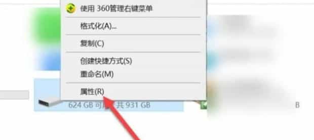 第一:右键点击需要优化的盘,点击属性。