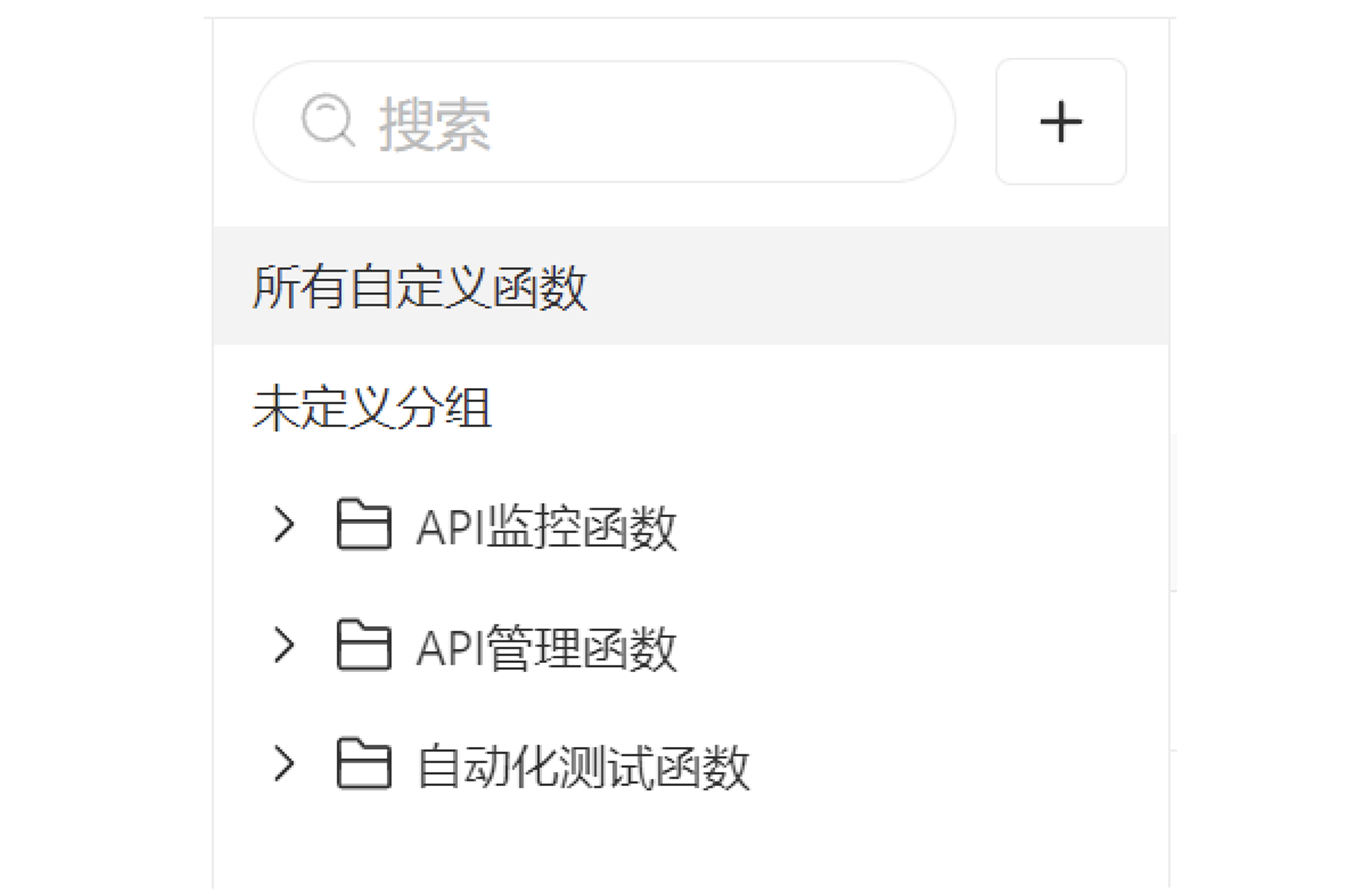 并且为了尽量保持数据的完整性,会完全保留应用级的自定义函数分组结构。各应用自定义函数合并成空间级自定义函数后,在空间级自定义函数分组中会增加三个一级分组“API 管理函数”、“自动化测试函数”、“API 监控函数”,各应用自定义函数会置于对应的应用分组下。
