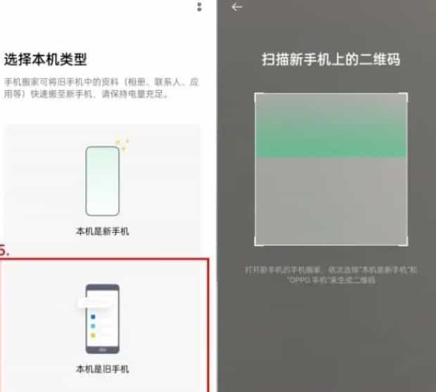 4、然后在旧手机上面点击本机是旧手机,并扫描上图中的二维码。