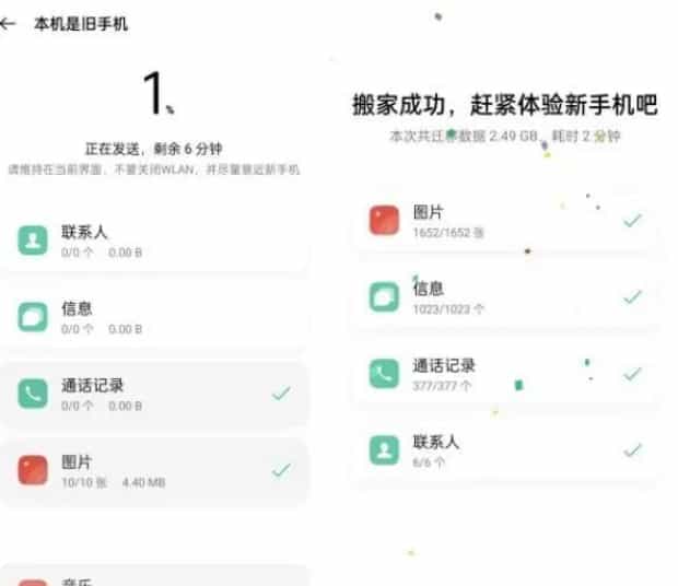 第五:连接成功后,新手机会显示等待对方传输数据,在旧手机上选择需要传输的资料。