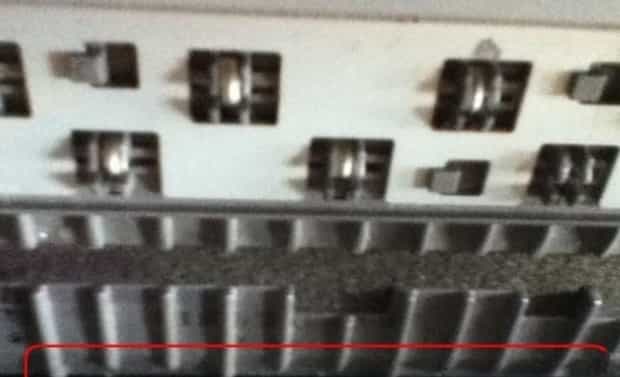 第二:有些打印机有个小开关,就中间层前面那个蓝色的按钮,找到按下去,掰开盖子就会打开。