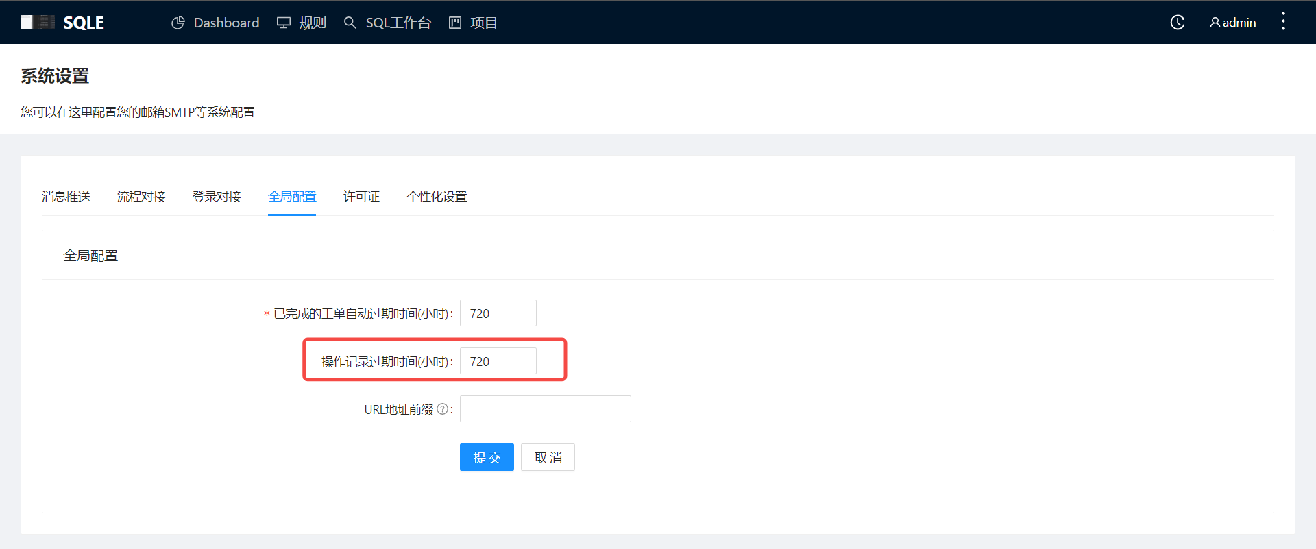 为了满足用户的自定义需求,SQLE 新增了配置入口,用户现在可以根据实际需求设置操作记录的过期时间。