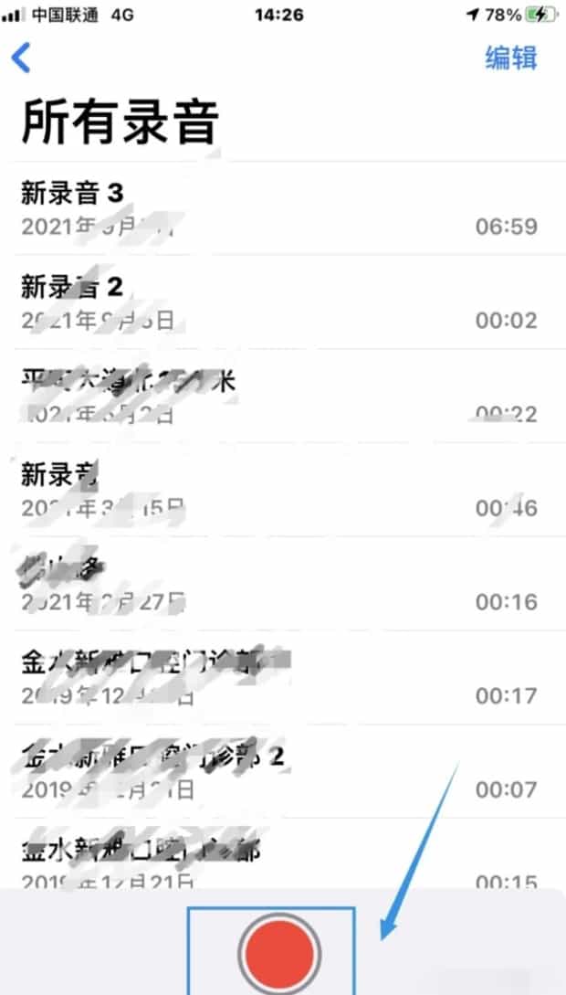 第二:进入语音备忘录,点击开始录音。