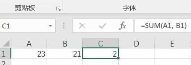 2、也可以用SUM求和函数,在减数引用单元格前加负号:=SUM(A1,-B1)。