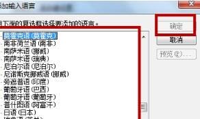 5、此时页面会弹出一个添加输入语言的菜单选择页面,在此页面里我们点击选择我们需要语言,然后点击右上方的【确定】按钮即可。