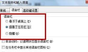 6、常规设置完成后,我们点击【语言栏】按钮,在语言栏编辑页面里,我们点击可以对语言的的位置进行选择编辑。