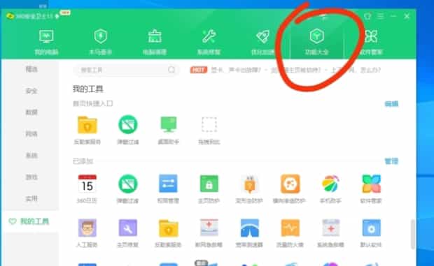 点击“功能大全”选项